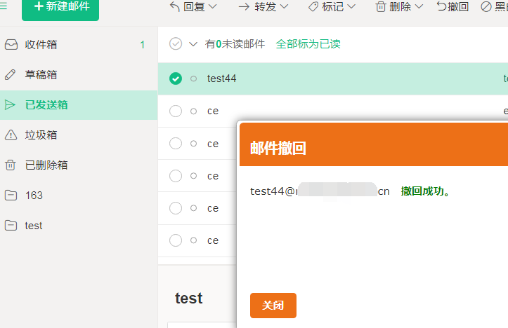 邮件撤回操作后,会弹出如下图的撤回报告:
